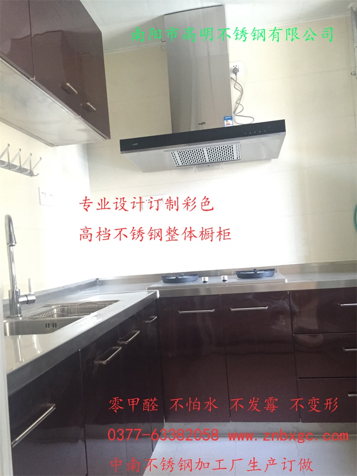 南陽高檔酒紅不銹鋼整體櫥柜