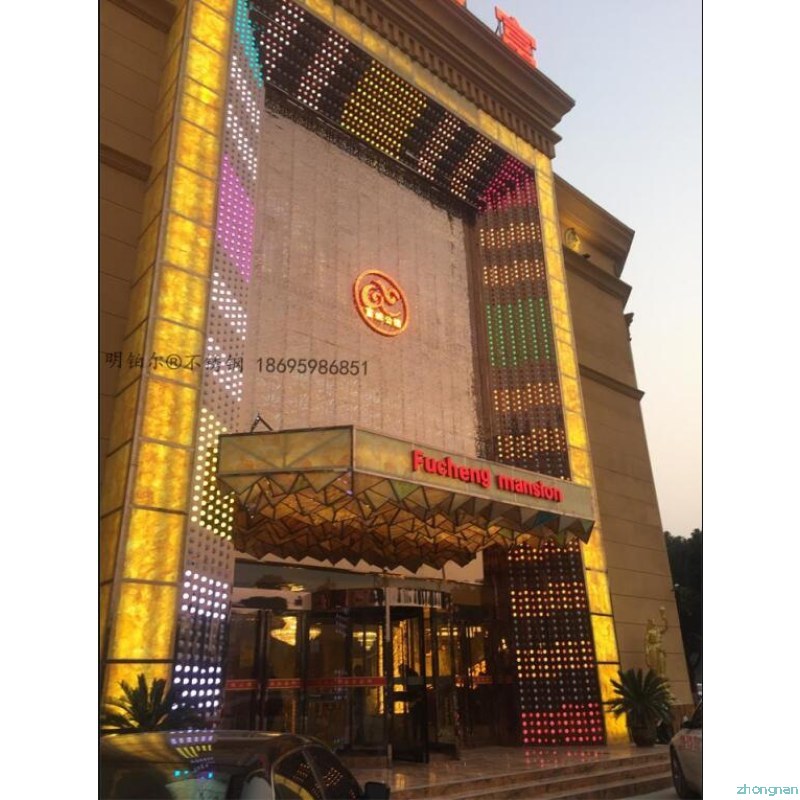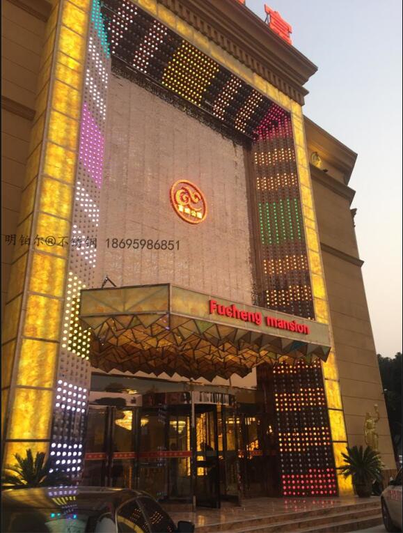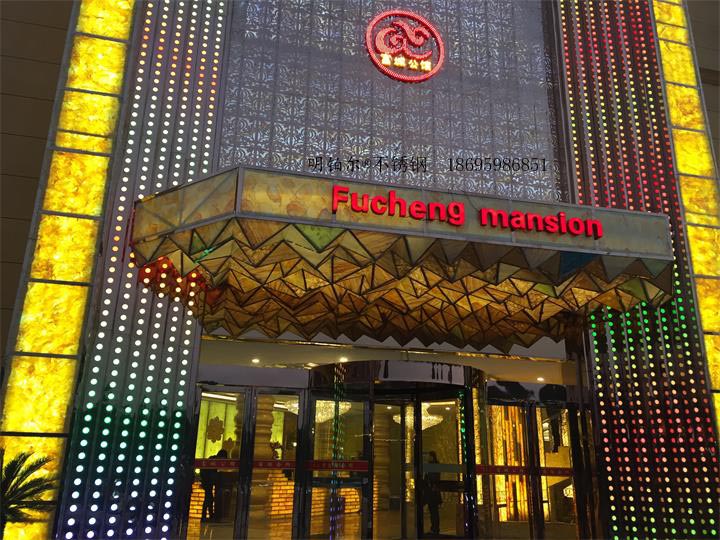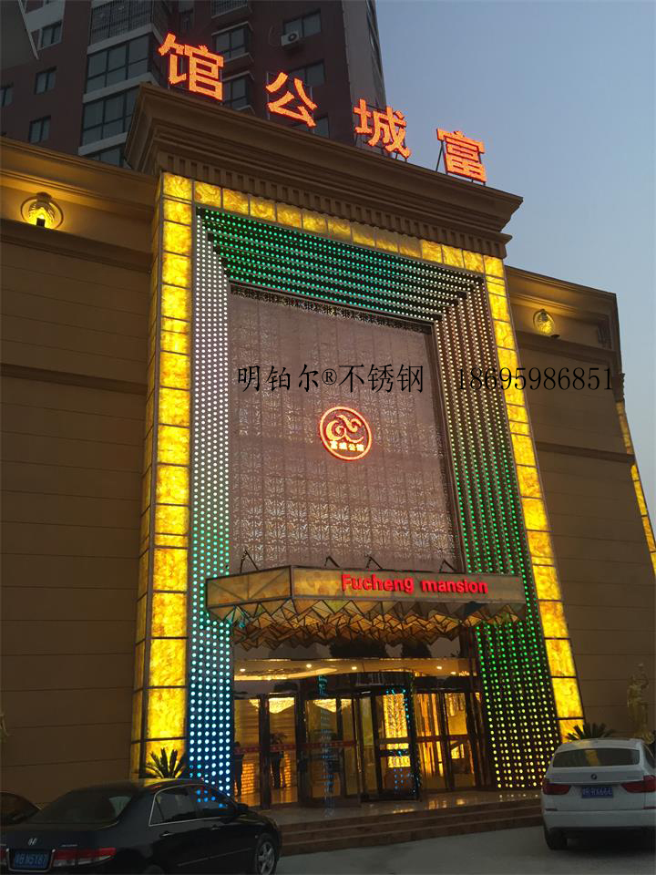 唐河富城公館國際會所設計定制明鉑爾?不銹鋼藝術屏風,雕花,造型,旋轉門工程