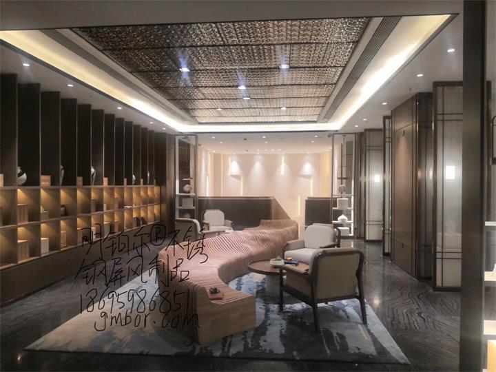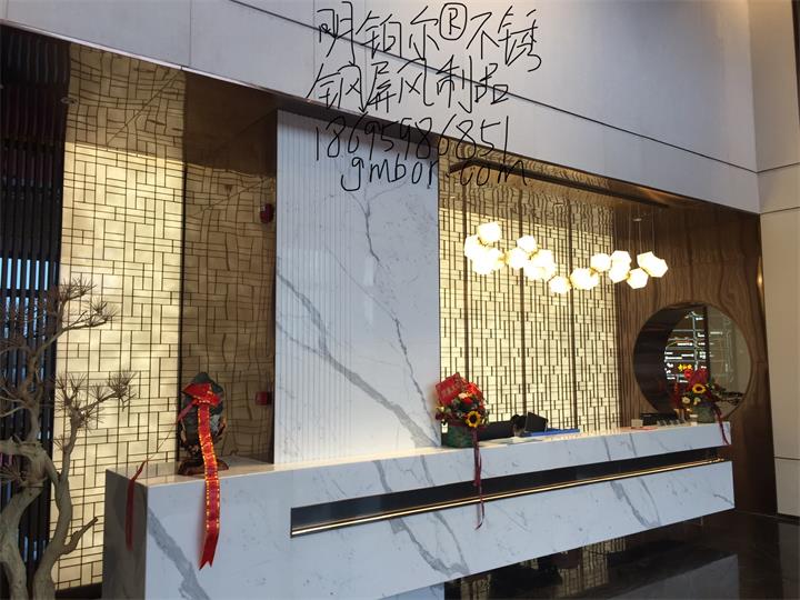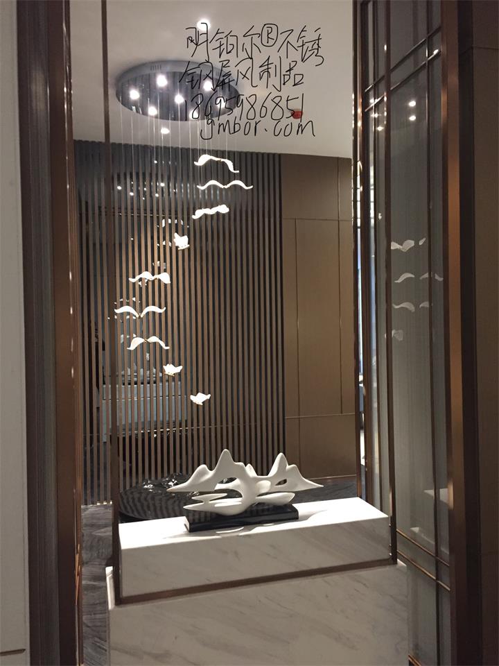 不銹鋼藝術屏風隔斷造型,明鉑爾不銹鋼藝術工程,南陽青楓苑售樓中心,深圳香港設計大師,國際藝術標準設計,