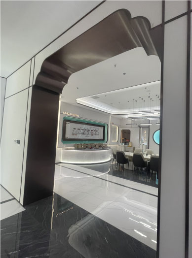 通往會(huì)客廳的曲線線條包邊不銹鋼門洞。